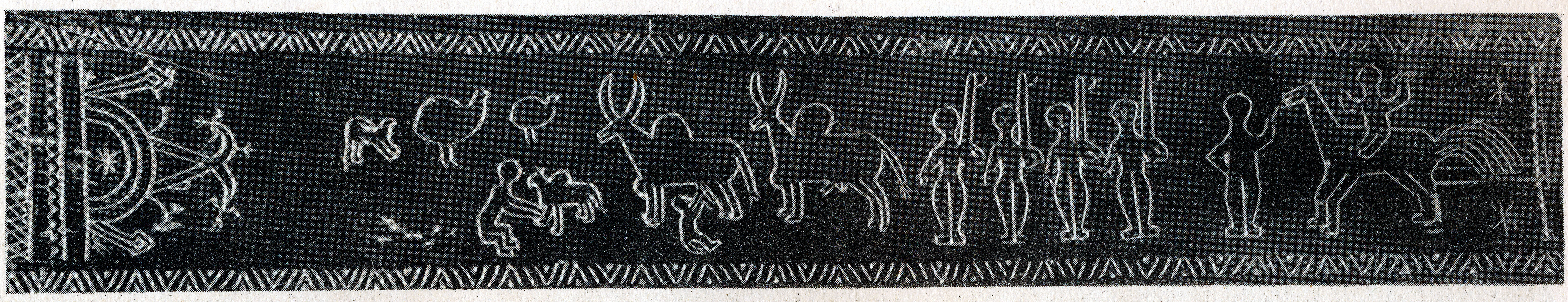 1 incised outlines (Fig. 3). The perspective tends to be “naïve,” the figures presented frontally and floating freely in space.