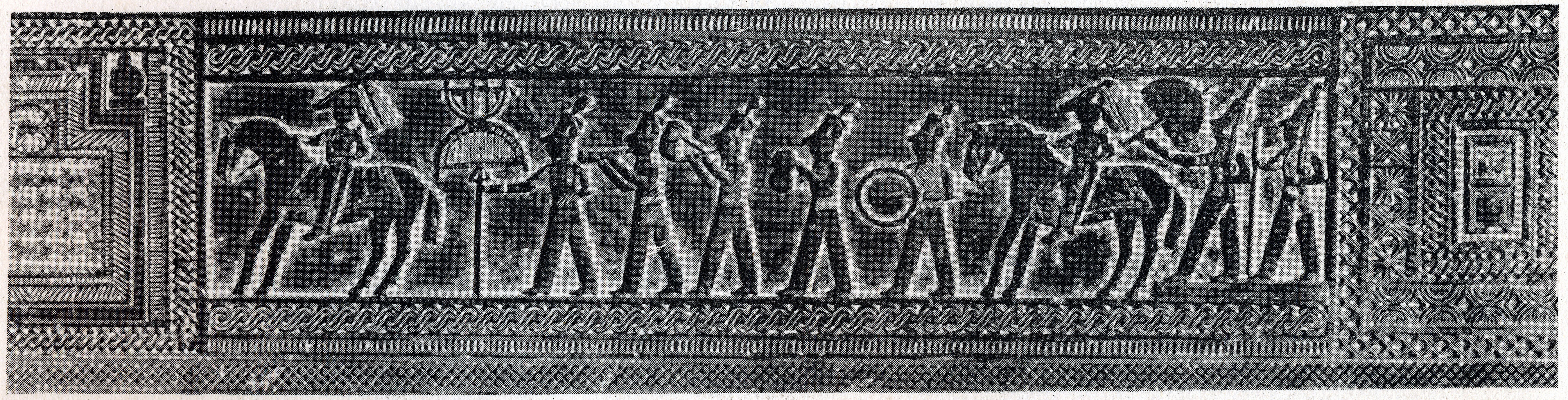 It is certainly the case that the themes and conventions of the Tranovola wall décor are to be found in the majority of figurative bois de lit: military band processions in profile, mounted officers, canons, women portrayed frontally with a very distinctive round, puffed hair style40.