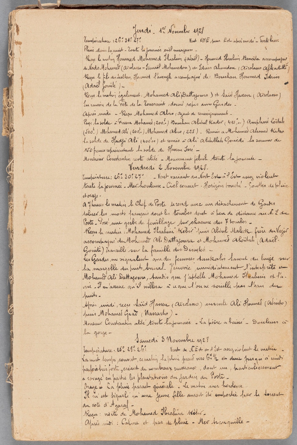 Journal du poste de Tadjourah du 1er novembre 1928 au 31 décembre 1936. 1re page