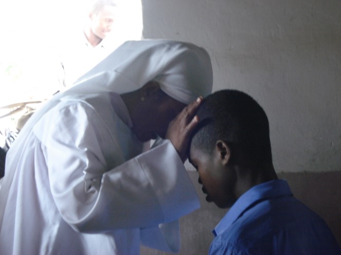 Le type qui est en polo noir là, c’est un cas spécial, parce qu’il était venu possédé par le Diable. Il a suivi le culte satanique avant. Et lorsque cet événement se passe, la nuit, il sort de chez lui, il va quelque part, et ne sait où est-ce qu’il est… On lui a tracé le visage même ! Et il ne peut pas… en arrivant ici, il ne peut pas… même pas appeler le nom de Jésus. Et son hobby c’est appeler le nom de Jésus et son regard… ses yeux tournent en haut là et il commence à ramper à quatre pattes comme un lion, il rugit comme un lion. Mais maintenant, il peut appeler le nom de Jésus !16.