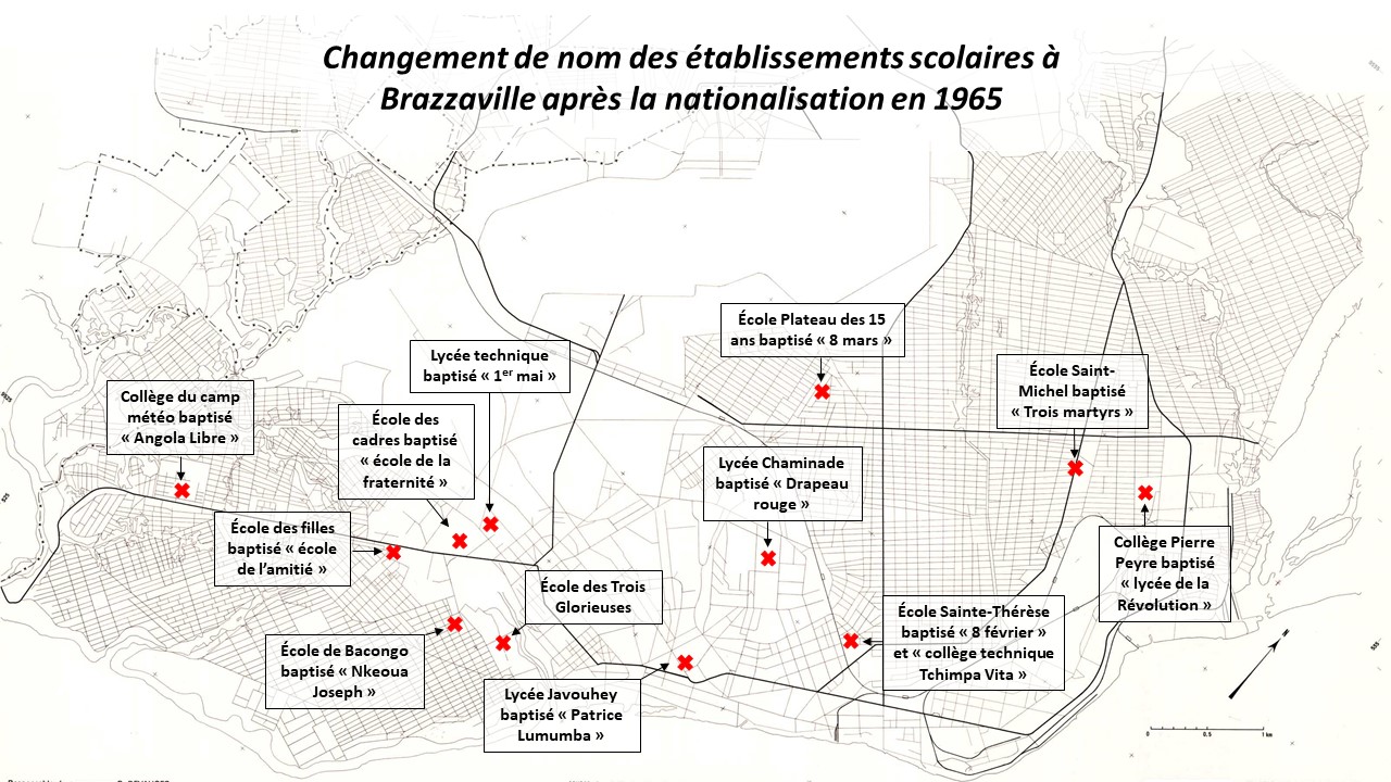 Changement de nom des établissements scolaires à Brazzaville après la nationalisation en 1965