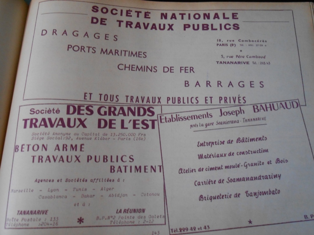 Exemples d’entreprises françaises de Travaux publics présentes à Madagascar pendant la Première République