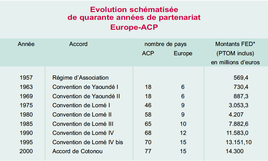 Source : D. David, « Plus de 40 ans de relations UE-ACP », Le Courrier ACP-UE, Septembre 2000, édition spéciale Accord de Cotonou, p. 12