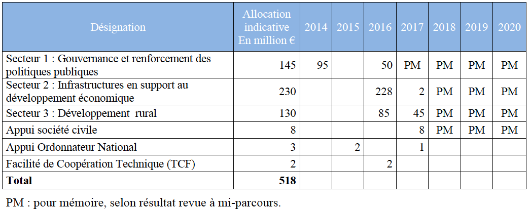 Programme Indicatif National PIN 11e FED (2014-2020) - Calendrier indicatif pour l’engagement des fonds (montants indicatifs)