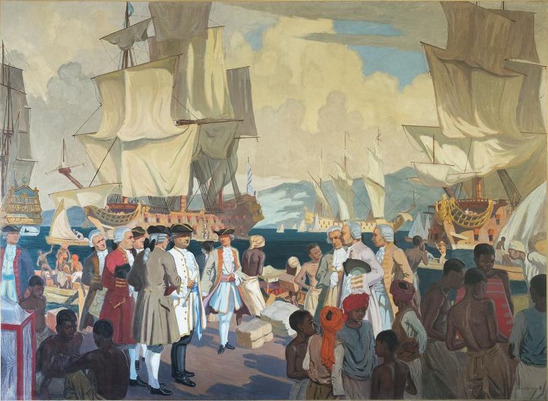 Figure 8 : M. Ménardeau, « L’arrivée de Mahé de la Bourdonnais », huile sur toile