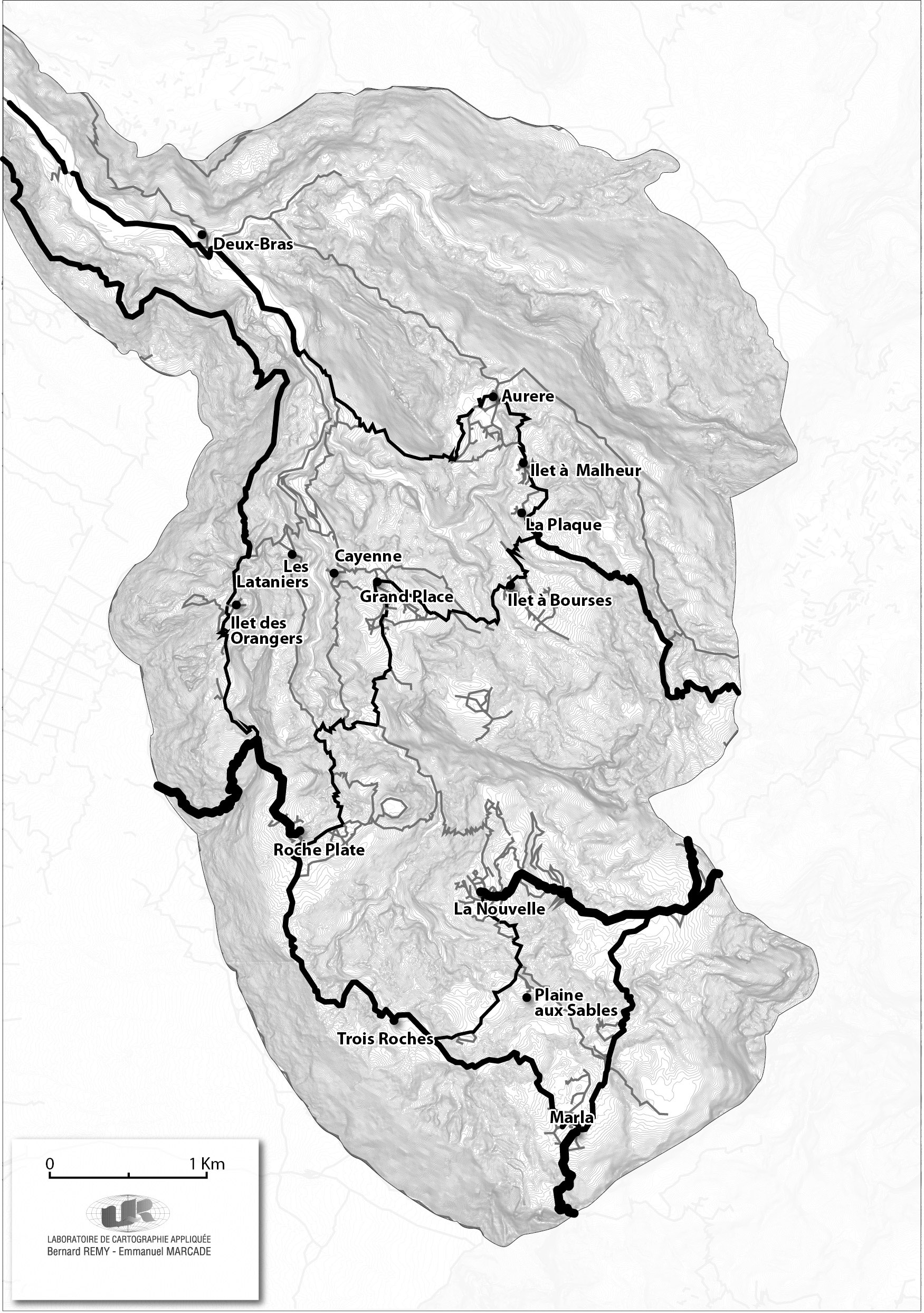 Cette frange du rempart a pu accueillir les premiers regroupements qui, sur les meilleures terres, ont formé l’embryon des actuels îlets des Lataniers, Orangers, Roche Plate, Trois roches et Marla, sur la rive gauche de la rivière des galets, ces îlets restaient signalés par Defos du Rau (supra)comme étant « à peuplement noir, ne (voyant comme visiteurs) que le forestier et le gendarme – deux ennemis » (p. 399) … L’histoire de cet espace s’inscrit par conséquent dans une très longue durée qu’il convient, probablement plus que partout ailleurs à La Réunion, de ne surtout pas occulter.